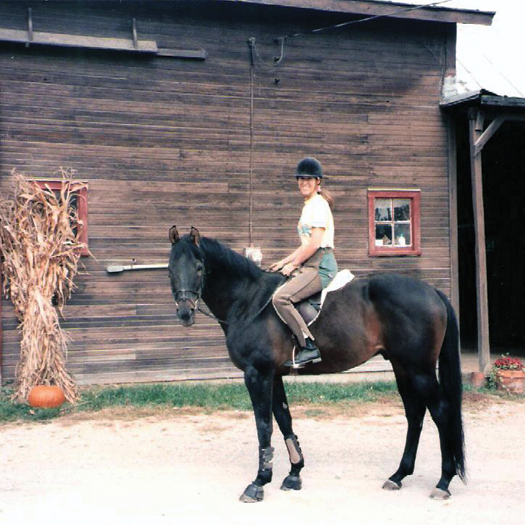 Brennan—registered name, J.B.'s Hero—was a Thoroughbred gelding and came into the life of Linda Pavey in 1990. While taking riding lessons at Camargo Stables in Indian Hill, a suburb of Cincinnati, Brennan came up for sale. Linda had already been looking for her own horse to buy and was looking for a gray horse. Brennan was a dark bay color, and nearly black with no white or gray at all. However, after riding Brennan, he won her over and Linda forgot all gray horses and bought him. Over the years, the two went on long trail rides together, jumped fences and creeks, galloped through fields, and enjoyed the outdoors around Indian Hill. They rarely had company on their rides, and Linda and Brennan , learned to trust and protect one another in every kind of situation; sudden thunderstorms, rough terrain, traffic, and around Cincinnati Country Day School's softball area, with kids in full practice or games, shouting and cracking the ball. As with any relationship, trials and tribulations help form a bond that is everlasting, and Linda and Brennan became best friends.